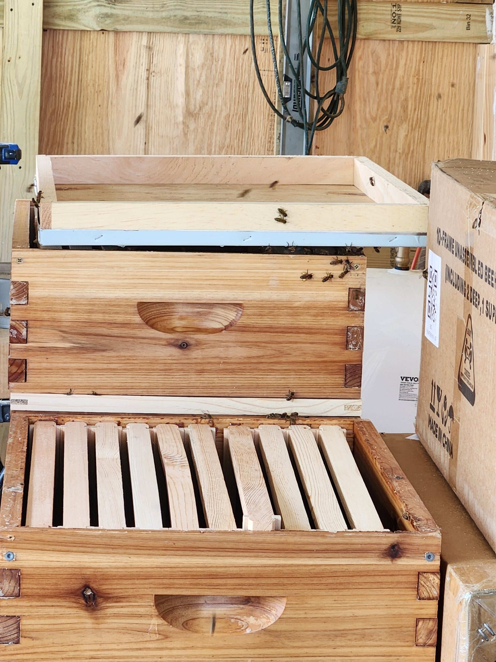 This was our second swarm capture. They actually captured themselves in an empty hive that was in a stack under my shed. All I had to do was get them isolated into one box and prepare them to be moved to the bee yard. March 2024